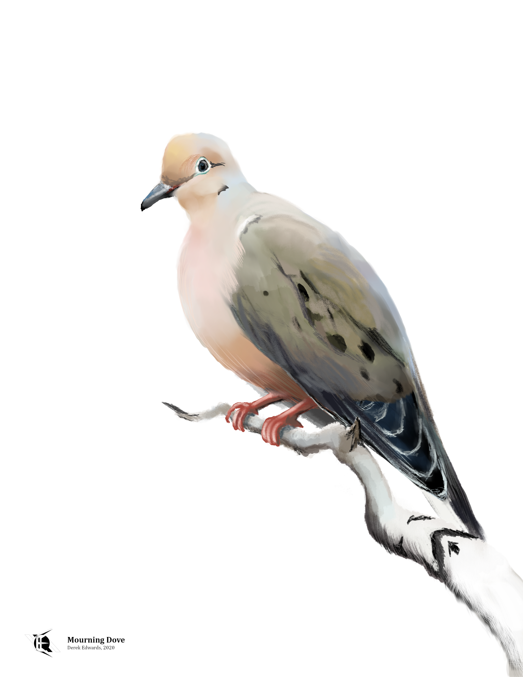 While they literally pale in comparison to their cousins in the South Pacific, mourning doves are, I noticed as I drew one, actually quite colorful. They are beige, but they are many hues of beige: yellowed in the head, green-gray in the neck and back, olive in the wings, blushy in the front. They’re really quite pretty if you can get a good look at them.