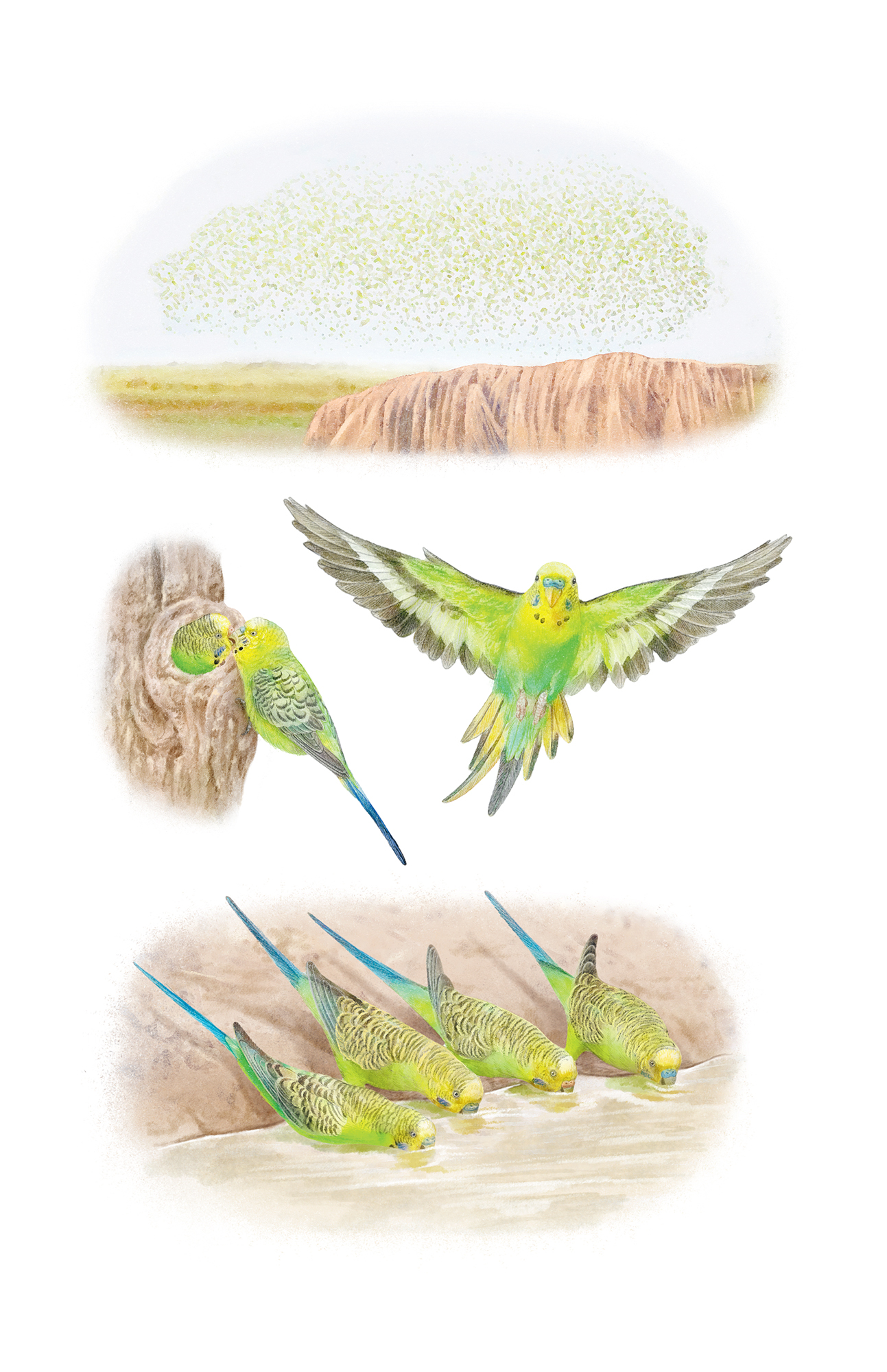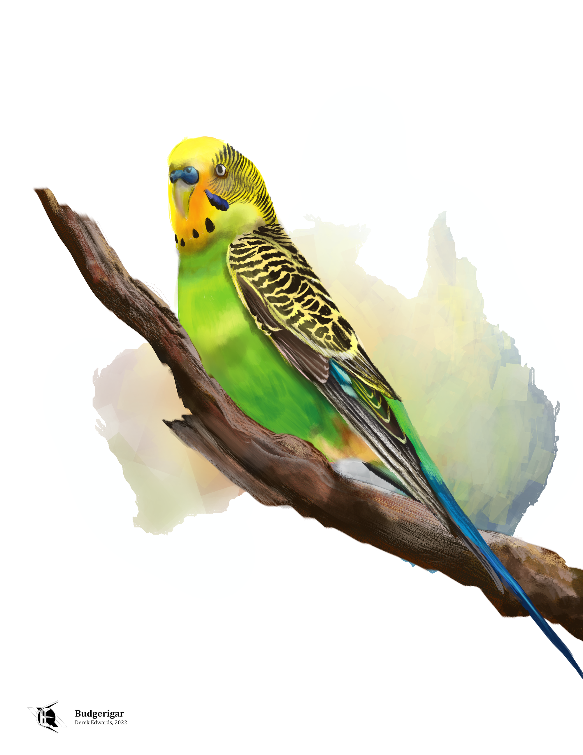 Art-wise, it’s kind of hard to say, in my not-especially impartial opinion, whose is better. Miyake seems to do his work here in watercolor or some similar paint, with line-work detail done over that. The feathers of his birds have a lot more detail than the feathers of most of mine, and, if I had to guess, his works are done larger than mine. Miyake also has depicted more than one of most of his birds, while my birds are typically solo portraits. My birds are a bit less detailed, and a bit more colorful. I generally draw more than paint, with my style having been developed mainly through the use of colored pencils. Nowadays I do my work digitally, which better allows for light colors to go over dark, which also influences how my art looks. Whose style you prefer is up to you. I somewhat prefer my own, but my style is my style, ultimately, because I think it looks good. But I also think Miyake’s art looks good. He puts the work into every painting, never giving the impression that he’d gotten bored with a work midway through and pushed it out to meet a deadline, which is more than I can say of my birds some weeks.
