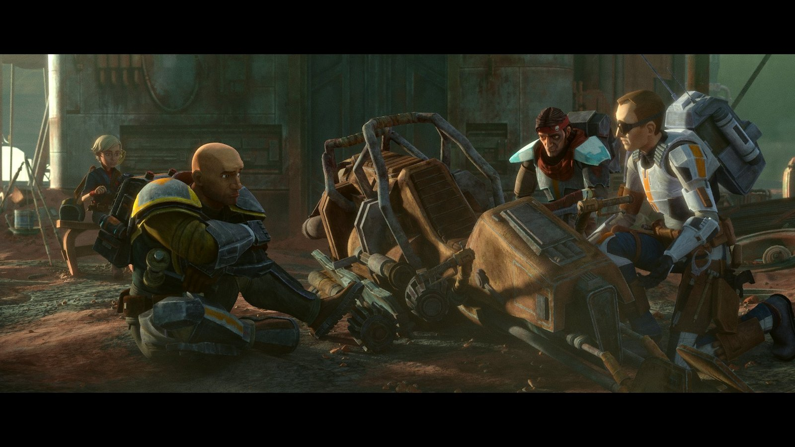 - We see another after-effect of the Clone Wars: in the absence of the major corporate powers that bankrolled the Separatists, a lot of far-flung industrial sites have fallen into the hands of local private actors, and not all of them are interested in running a legitimate business. This is the sort of situation we've seen in Star Wars before, and certainly in real-life post-war societies as well, but I found it working well again here. Omega's recognition that the Galaxy is full of Mekkos gives me hope that our heroes might find some purpose in their lives besides treasure hunting.