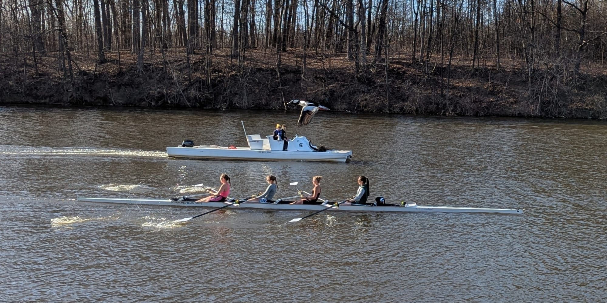 Oh, and update from last week: I found a bufflehead! Here it is flying past a 4-woman college rowing team: