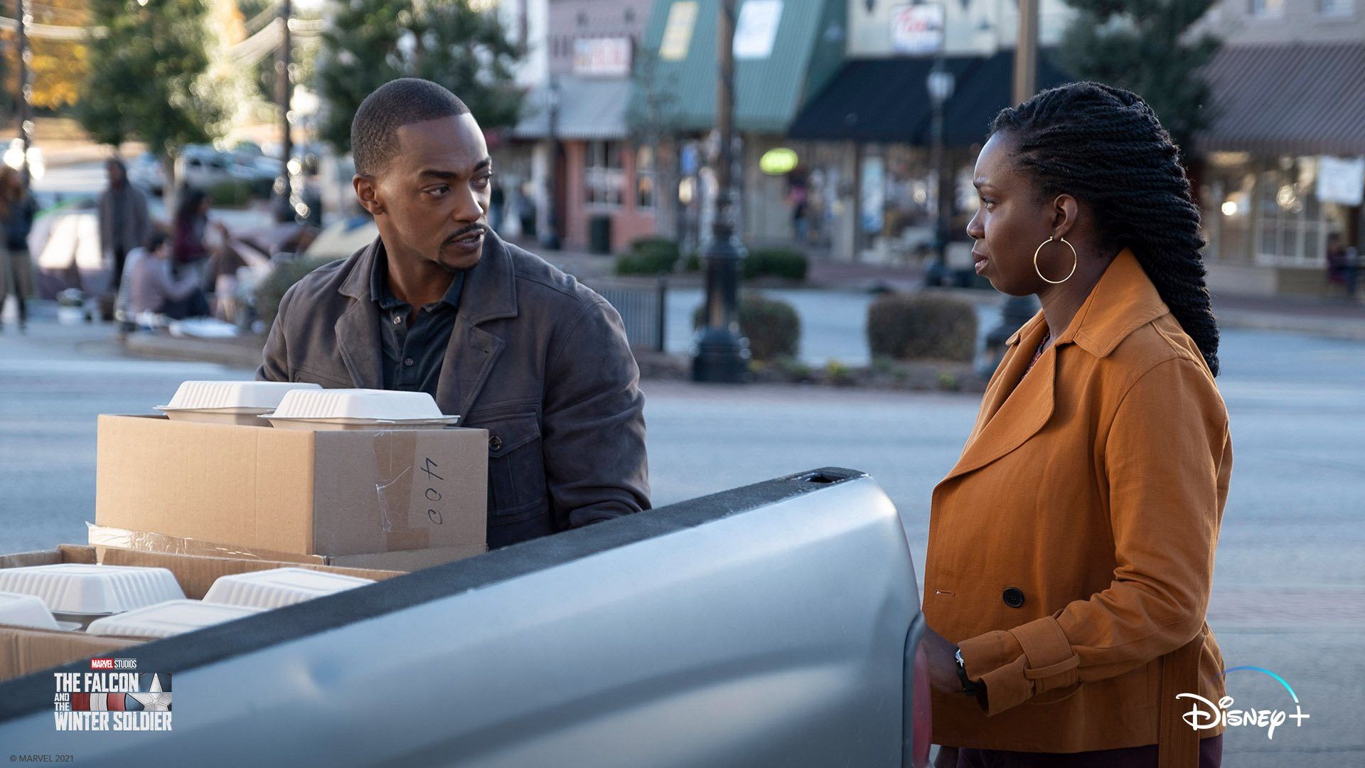 - Falcon and the Winter Soldier share no scenes in this first episode. Boole would say the show is more Falcon or the Winter Soldier, so far.
