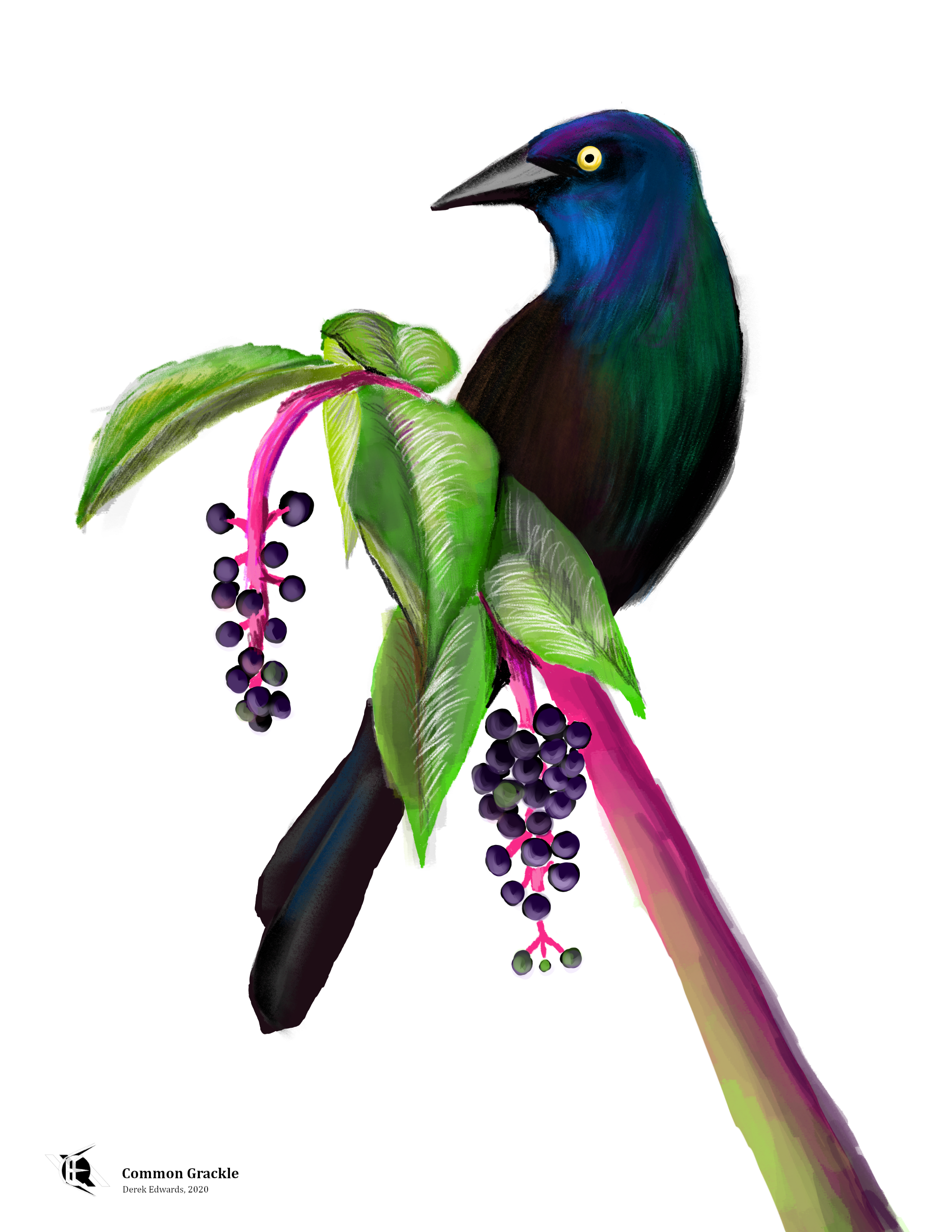 Their name is onomatopoeic, an imitation of their call. Their binomial, Quiscalus quiscula, comes from Linnaeus, though he originally gave them the Stoker-esque name Gracula quiscula. “Quiscula” is a bit of a mystery, etymologically; it’s similar to the native name for the island Columbus named “Hispaniola”, but grackles can be found throughout eastern North America, not just the Caribbean.