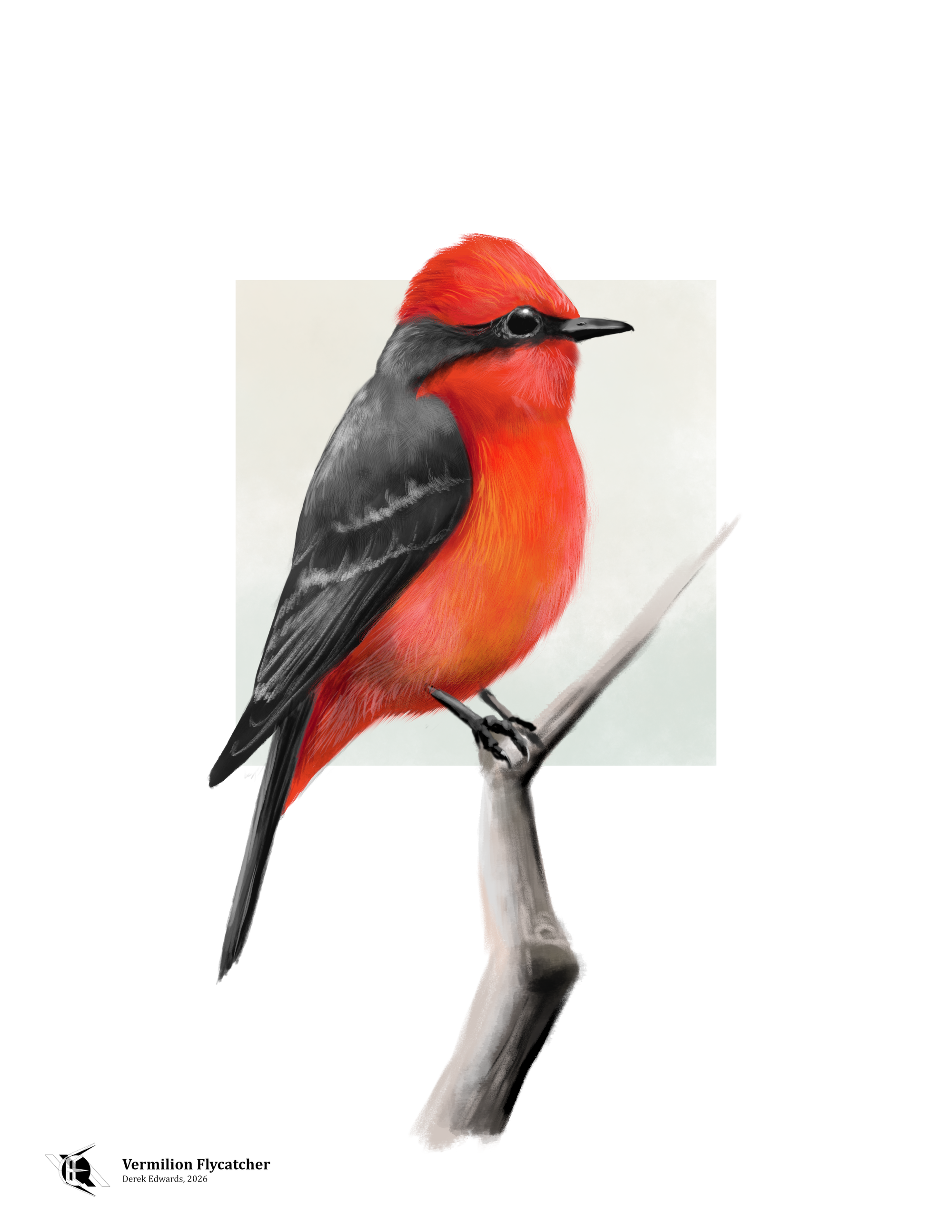 Breeding in open country in the U.S. Southwest and down through Latin America, the vermilion flycatcher looks and acts much like most other tyrannids found in North America, except that rather than being shades of gray, the male is dark gray accented with a very bright red. “Vermilion” is a word that tends to trip people up; it doesn’t seem like it ought to be a shade of red, starting with ver‑ as it does. Vermont, verdant, salsa verde — all these terms derive from a Latin word for something green. As I mentioned back when I drew the vermilion cardinal, the word vermilion comes from the Latin word for “worm,” which is also, via Norman French, the root of the English word vermin, which has come to refer to any number of unlovely creatures, not just little red earthworms.2 When writing about the color, I mentioned how, in the ancient world, vermilion in the form of the mineral cinnabar was expensive, and wealthy Romans would show off their status by decorating with it. The color became more accessible in the Middle Ages and was fairly common by the opening of the modern era.