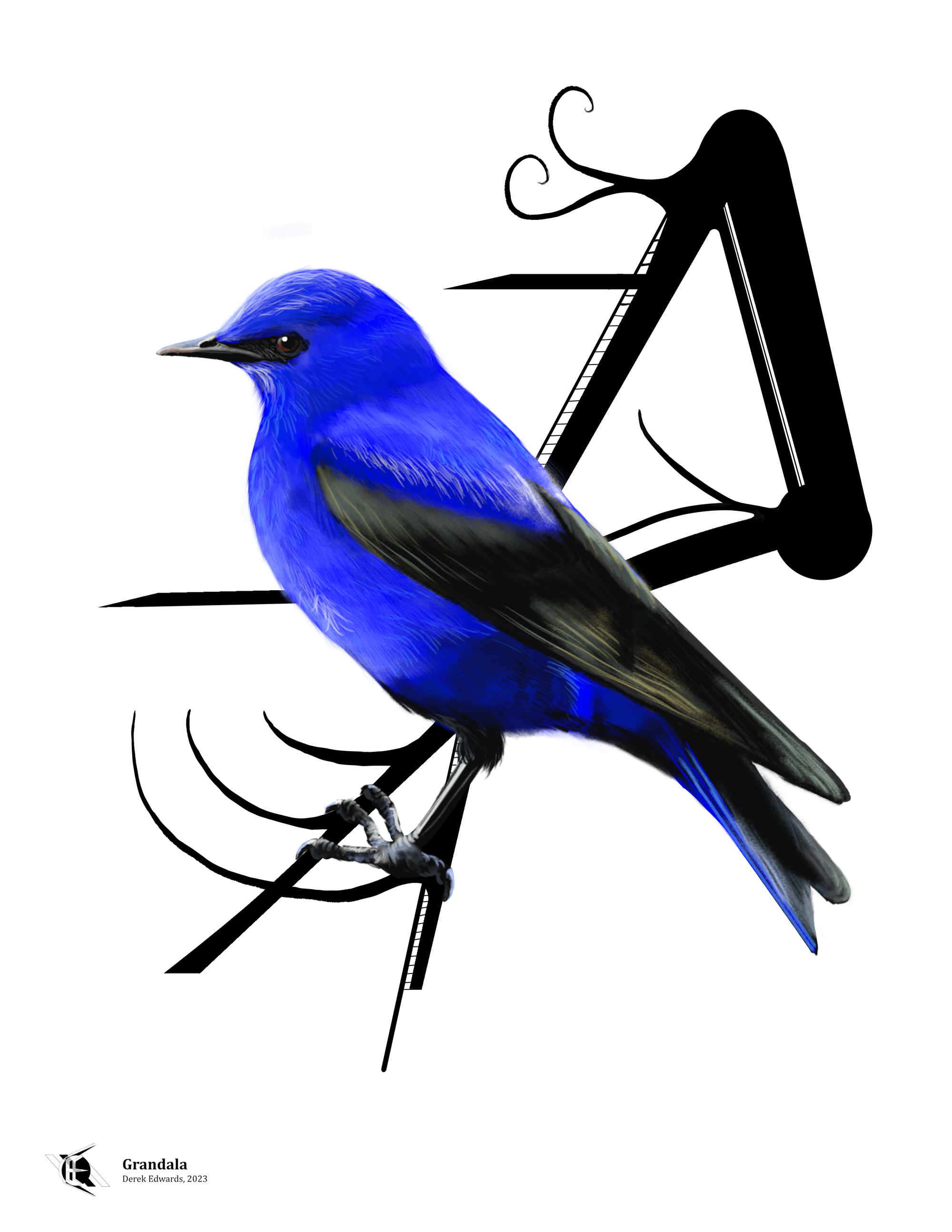 The grandala is not a very well-known bird. I'm sorry to say I've found almost no information about it beyond physical descriptions, vague statements regarding its diet, and photographs. It doesn't even have a common name in English; Grandala is the name of its genus, of which it is the only member. It is considered a thrush, though it seems possible that it will be re-classified in the wake of genetic testing.1 Brian Houghton Hodgson, when he first described the bird, called it "a singular bird, having the general structure of a Thrush, but with the wings vastly augmented in size and the bill of a Sylvian [an Old-World warbler]"2 so even he lacked full confidence in calling it a thrush. He was the one to name it "grandala", from the Greek for "large-winged", when he called it Grandala cóelicolar; the specific name is the same today, though not spelled with the accent over the o, and it means "sky-colored".3 (I've covered Hodgson before when discussing a different bird which he was first to describe.)