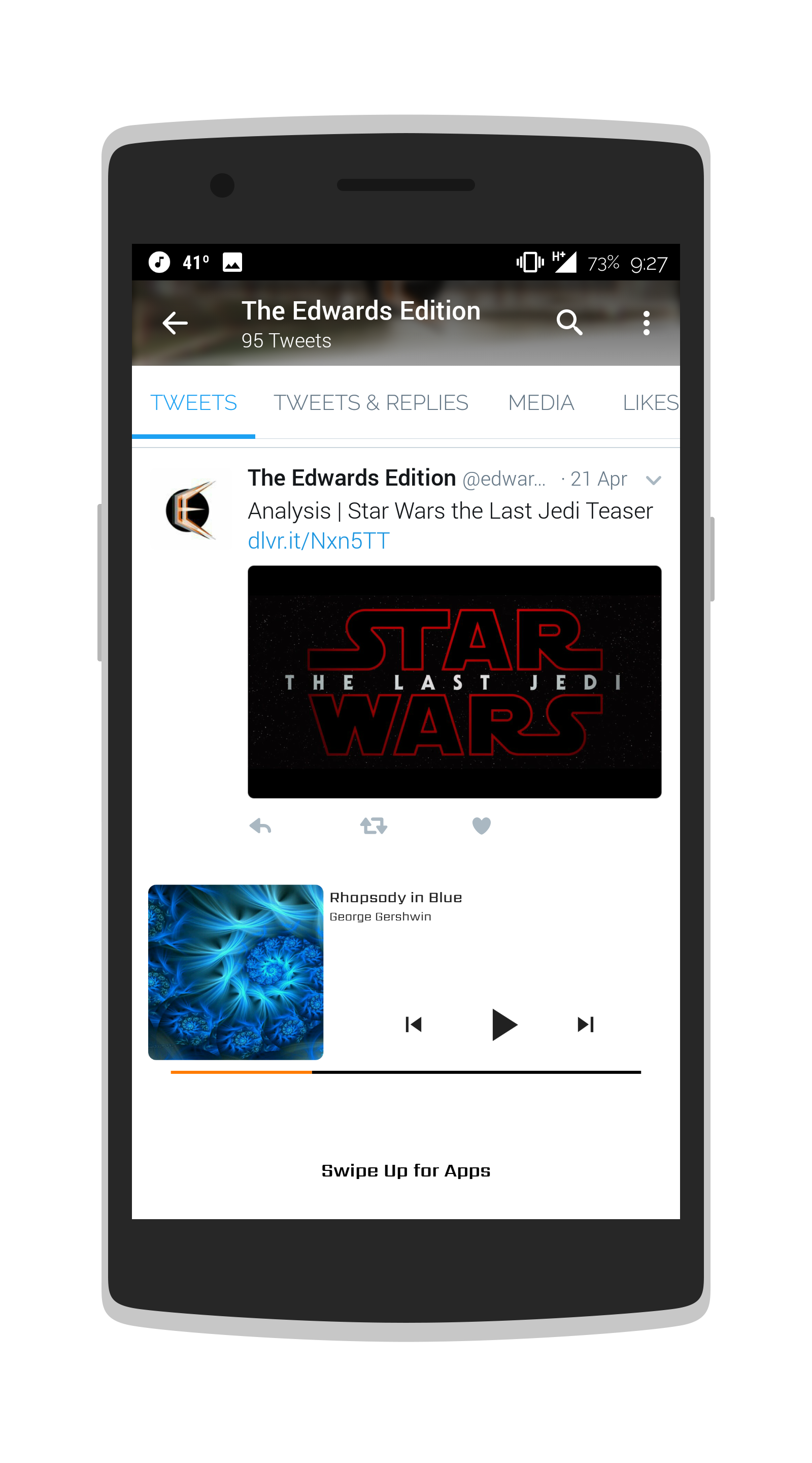 Right now, I’m only really using KWGT on the Floating Desktop. Lightning Launcher’s Floating Desktop works by overlaying a desktop over whatever’s on the screen. Swiping up from the bottom right corner of my screen shows me a KWGT widget showing time, date, battery, weather, and a Google search bar. Swiping this left or right scrolls to a KWGT music widget.