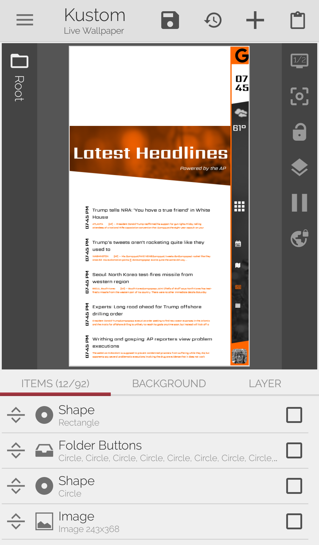 KLWP (Kustom Live Wall-Paper) was Kustom Industries’ first app. It is extremely popular in the Android theming community, and for good reason: by integrating features of launchers and widgets into a live wallpaper, Kustom produced the most highly customizable homescreen builder on any platform.